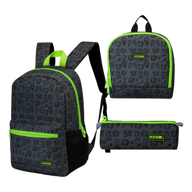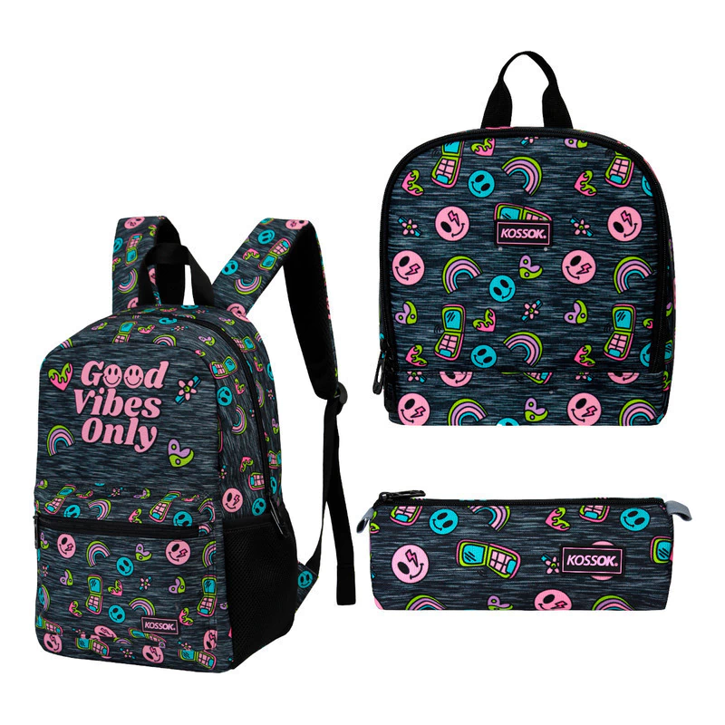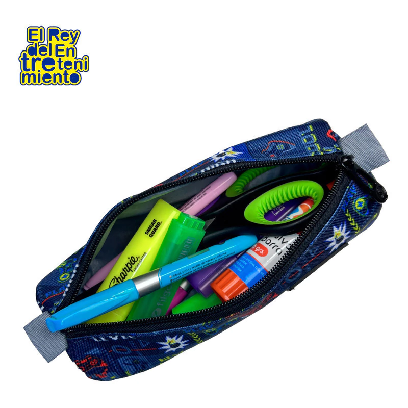 Incluye lunchera con interior térmico, con correa, cartuchera y stickers.