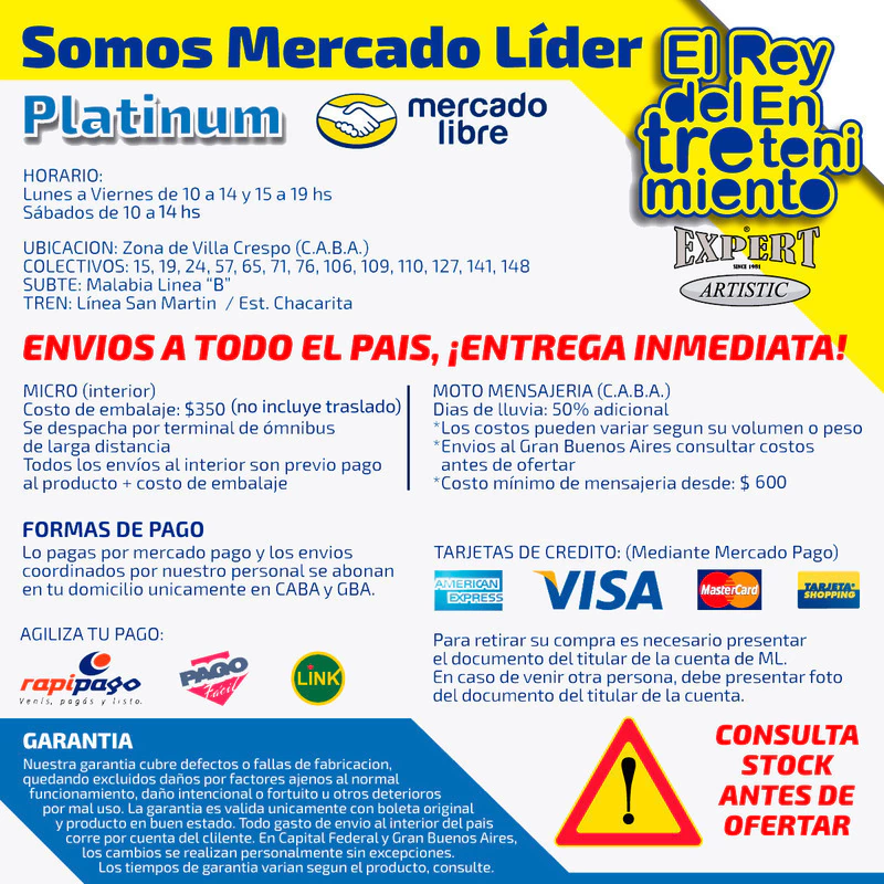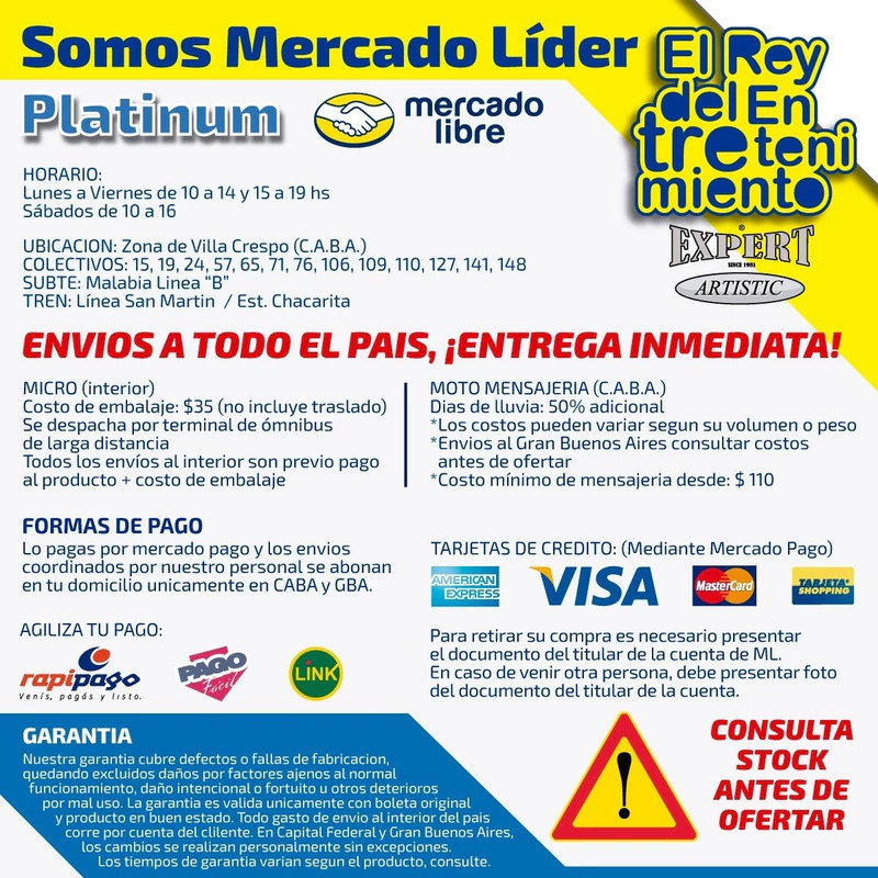 HORARIO: De L a V de 10 a 14hs y de 15 a 19hs. Sabados de 10 a 14hs (Feriados y Domingos: NO TRABAJAMOS)