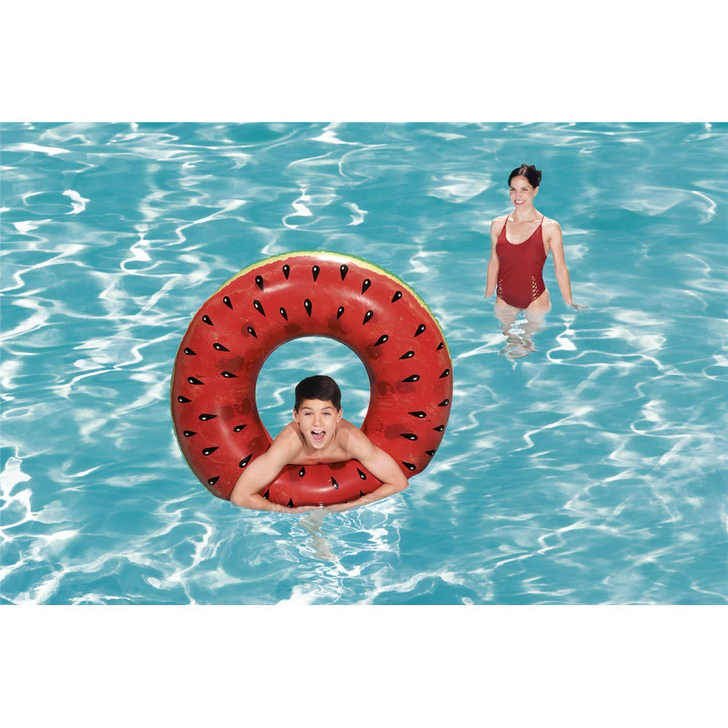 Disfruta del verano con el salvavidas inflable Bestway en forma de sandía o ananá, ideal para tus días de piscina o playa.