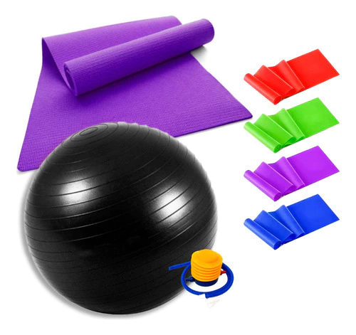 PELOTA DE PILATES ESFERODINAMIA REFORZADA DE 65 CM C/INFLADOR + THERA BAND TENSION BAJA Y MAT YOGA 3 MM